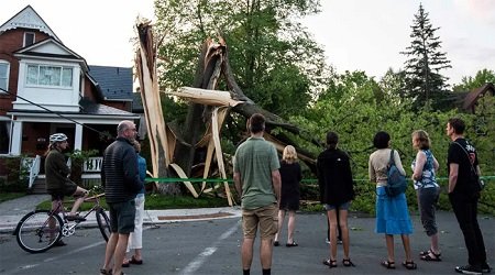 অন্টারিও ও কিউবেক প্রদেশের ওপর দিয়ে শনিবার বিকালে দুই ঘণ্টার বেশি সময় ধরে বজ্রসহ ঝড় বয়ে যায়। টর্নেডোর মতো শক্তি নিয়ে আঘাত হানা ওই ঝড়ের সময় বাতাসের গতি ছিল ঘণ্টায় ১৩২ কিলোমিটার।