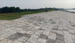 যার কারণে নদীর ধার যে কোন মুহুর্তে বসে যাবে। কিছু অংশ দু’মাস যেতে না যেতেই ভেঙ্গে গেছে। ৯০ লাখ টাকা খরচ করে যে কারনে বাঁধ দেয়া হল তা এক বর্ষা মৌসুমে টিকবে কিনা-সন্দেহ তাঁদের। সেলিম রেজা নামে এক যুবক অভিযোগ করে বলেন,কাজের গুনগত মান নিয়ে প্রশ্ন তোলায় মামলা ও হামলার ভয় দেখায় ঠিকাদার আকবর খান সোহেল ও তার লোক জন। এমনকি যাঁদের জমি লীজ নিয়ে ব্লক তৈরি করা হয়েছিল তাঁদের টাকা পরিশোধ না করেই ঠিকাদার লাপাত্তা রয়েছে। উপজেলা মহিলা ভাইস চেয়ারম্যান মোসাঃ শাহানাজ খাতুন অভিযোগ করে বলেন, আমি একজন জনপ্রতিনিধি হিসেবে জনগণের পাশে থেকে উন্নয়নের কাজ তদারকি করার দায়িত্ব থেকে খোঁজ-খবর নিতে যায়। সেই সুবাদে কাজ চলার সময় সরজমিন গেলে কাজের ব্যাপক অনিয়ম দেখে প্রতিবাদ করেছিলাম। এ সময় ঠিকাদার ও দায়িত্বরত কর্মকর্তা অর্থ দিয়ে ম্যানেজ করার চেষ্টা চালান। ম্যানেজ চেষ্টা ব্যার্থ হলে আমার নামে আদালতে মিথ্যা চাঁদাবাজির মামলা দায়ের করে হয়রানিতে ফেলেছেন। উচ্চ আদালত থেকে মিথ্যা চাঁদাবাজির মামলায় জামিনে মুক্ত হই।