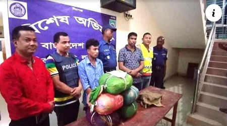 জিন্নাতুল ইসলাম জিন্না, লালমনিরহাট প্রতিনিধি : লালমনিরহাটের হাতীবান্ধা উপজেলায় ২৫ কেজি গাঁজাসহ সুজন মিয়া (১৯ ) নামে এক মাদক ব্যবসায়ীকে আটক করেছে পুলিশ। শুক্রবার (১০ জুন) ১২ টার দিকে হাতীবান্ধা থানার অফিসার ইনচার্জ (ওসি) এরশাদুল আলম বিষয়টি নিশ্চিত করে বলেন সকালে আটক মাদক ব্যবসায়ীকে আদালতের মাধ্যমে জেল হাজতে প্রেরন করা হয়েছে। এর আগে বৃহস্পতিবার (৯ জুন) রাত ৯ টায় উপজেলার বিদ্যুৎ অফিস সংলগ্ন রেল গেটের সামনে থেকে তাকে আটক করা হয়। আটক সুজন মিয়া হাতীবান্ধা উপজেলার বড়খাতা ইউনিয়নের পূর্ব সারডুবী এলাকার আজিজুল ইসলামের ছেলে।