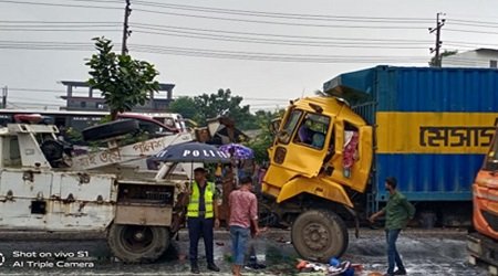 মাওনা হাইওয়ে থানার ওসি আমিনুল ইসলাম জানান, ভোরে দুটি কাভার্ডভ্যান ঢাকার দিকে যাচ্ছিল। একটি সামনে আরেকটি পেছনে ছিল। পেছনে থাকা কাভার্ডভ্যাটি বেপরোয়া গতিতে ওভারটেক করতে গিয়ে সামনেরটির সঙ্গে ধাক্কা খায়। এতে ওভারটেক করা কাভার্ডভ্যানের সামনের অংশ দুমড়ে মুচড়ে যায়। এতে চালক শামসুল হক ঘটনাস্থলেই নিহত হন। এ ঘটনায় তার সহকারী (হেলপার) গুরুতর আহত হয়েছেন। তাকে শহীদ তাজউদ্দিন আহমদ মেডিক্যাল কলেজ হাসপাতালে ভর্তি করা হয়েছে।