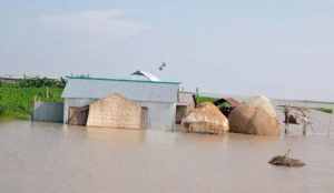 রাশিদুল ইসলাম, কুড়িগ্রাম : কুড়িগ্রামে নদ-নদীর পানি কমে বন্যা পরিস্থিতির উন্নতি হলেও বানভাসিদের বেড়েছে দুর্ভোগ। ১৫দিন থেকে প্রতিটি ঘর পানিবন্দি থাকায় সীমাহীন কষ্ট বেড়েছে তাদের। নিজেদের ঘরে থাকা চাল-ডাল ফুরিয়ে টানা সাত দিন থেকে ত্রাণের বিস্কুট, মুড়ি ও চিড়া খেয়ে দিনাতিপাত করছে এসব মানুষ। পানি দীর্ঘস্থায়ী হওয়ায় গবাদিপশু নিয়ে বিপাকে পড়েছে খামারিরা। দেড় হাজার পুকুর-খামারের মাছ ভেসে যাওয়ায় মৎস্য চাষীদের ক্ষতির পরিমাণ দাড়িয়ছে ২ কোটি ৬৮ লক্ষ টাকা। ১৫ হাজার ৮৫১ হেক্টর জমির ফসল এখন পানির নিচে। চরম মানবিক বিপর্যয়ে পতিত হয়েছে পানিবন্দি মানুষ।
