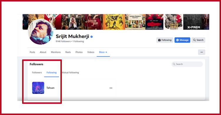 তাহসান সৃজিতের স্ত্রী রাফিয়াত রশিদ মিথিলার প্রাক্তন স্বামী। অধিকাংশ মানুষ যেখানে স্ত্রীর প্রাক্তনের নামই শুনতেই পারেন না, সেখানে ব্যতিক্রম এ নির্মাতা। তাহসানকে ফেসবুকে ফলো করছেন সৃজিত- এমনটা বুধবার (১২ জুলাই) সকাল পর্যন্ত দেখা গেলেও দুপুরের পর তা আর দেখা যাচ্ছে না।