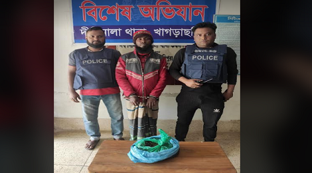 জসীম উদ্দিন জয়নাল,পার্বত্যাঞ্চল প্রতিনিধি: খাগড়াছড়ি জেলার দীঘিনালা থানা পুলিশের পৃথক বিশেষ অভিযানে দুই মাদক ব্যবসায়ী গ্রেফতার করেছে থানা পুলিশ। বর্তমানে র্স্পশকাতর সময়ে খাগড়াছড়ি জেলার আইন-শ্ঙ্খলা পরিস্থিতি ও জনজীবন স্বাভাবিক রাখার লক্ষ্যে অত্র জেলায় মাল্টিলেয়ার নিরাপত্তা বেষ্টনীসহ নাশকতা/অপতৎপরতা রোধে বিশেষ অভিযান অব্যাহত রেখেছে খাগড়াছড়ি জেলা পুলিশ। এরই ধারাবাহিকতায় দীঘিনালা থানায় গত