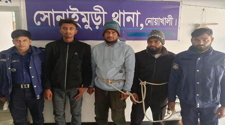 রোববার (১৪ জানুয়ারি) রাতে উপজেলার নাটেশ্বর ইউনিয়নের বিভিন্নস্থানে অভিযান চালিয়ে তাদের গ্রেপ্তার করা হয়। এ ঘটনায় নিহতের স্ত্রী শারমিন আক্তার বাদী হয়ে রোববার রাতে অজ্ঞাত নামা কয়েকজনের বিরুদ্ধে সোনাইমুড়ী থানায় একটি হত্যা মামলা দায়ের করেন। এর আগে গত শনিবার রাত সাড়ে ৯টার দিকে নাটেশ্বর ইউনিয়নের পূর্বমির্জানগর গ্রামে এ ঘটনা ঘটে। নিহত পলাশ ওই গ্রামের মৃত জামাল হোসেনের ছেলে।