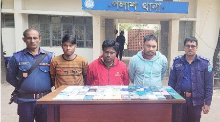 মো: সালাহউদ্দিন আহমেদ : নরসিংদীর পলাশে চুরিকৃত ৫৬টি স্মার্ট মোবাইল ফোন সহ তিন যুবককে গ্রেপ্তার করেছে পুলিশ। শনিবার (২০ জানুয়ারি) দুপুরে পলাশ থানায় এক সংবাদ সম্মেলনে এ তথ্য জানিয়েছেন নরসিংদীর অতিরিক্ত পুলিশ সুপার (সদর সার্কেল) কে.এম শহিদুল ইসলাম সোহাগ।
