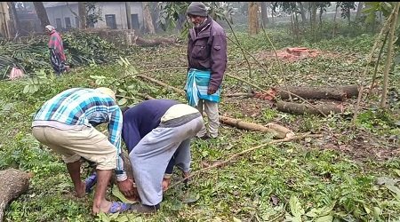 মোঃ জাহেরুল ইসলাম,আটোয়ারী (পঞ্চগড়)প্রতিনিধি : দেশের জীববৈচিত্র রক্ষার লক্ষ্যে ২০৩০ সাল পর্যন্ত সংরক্ষিত ও প্রাকৃতিক বনাঞ্চলে গাছ কাটার ওপর নিষেধাজ্ঞা অব্যাহত থাকলেও সকল নিয়মনীতিকে বৃদ্ধাংগুলি দেখিয়ে পঞ্চগড়ের আটোয়ারীতে বরেন্দ্র বহুমুখী উন্নয়ন কর্তৃপক্ষের সহকারী প্রকৌশলীর মৌখিক নির্দেশে প্রায় লাখ টাকা মূল্যের একটি মেহগনি গাছ কাটার অভিযোগ উঠেছে। বরেন্দ্র অফিসের সামনে তৎকালীন পানি উন্নয়ন বোর্ডের রোপিত মেহগনি গাছটি সরকারী ছুটির দিন শুক্রবার (২৬ ফেব্রুয়ারী) ভোরে কেটে ফেলা হয়। সরেজমিন ঘটনাস্থলে উপস্থিত হলে আটোয়ারী উপজেলা বরেন্দ্র বহুমুখী উন্নয়ন কর্তৃপক্ষ কার্যালয়ের অফিস সহকারী মোঃ সেহেল রানা সাংবাদিককে গাছ কাটার ছবি তুলতে বাঁধা দিয়ে বলেন, আমাদের জেলার উর্দ্ধতন কর্মকর্তা গাছটি কেটে ফেলতে বলেছেন। এখানে সরকারী ঘর নির্মাণ করা হবে। ‘সুস্থ্য, সুন্দর ও বাসযোগ্য ভারসাম্যপূর্ণ পরিবেশ এবং জলবায়ু পরিবর্তন বিরুপ প্রভাব মোকাবেলায় যেখানে সরকার গাছ নিধনে নানান উদ্যোগ নিচ্ছেন, সেখানে আটোয়ারী বরেন্দ্র উন্নয়ন কর্তৃপক্ষ ঘর নির্মাণের অজুহাতে ছুটির দিন ভোরে গাছ কেটে সাবাড় করছে। এব্যাপারে উপজেলা নির্বাহী অফিসার (ভারপ্রাপ্ত) ও সহকারী কমিশনার (ভূমি) শায়লা সাঈদ তন্বী’র সাথে কথা বললে তিনি জানান, খবর পেয়ে আমি সেখানে লোক পাঠিয়েছি। তদন্ত সাপেক্ষে ব্যবস্থা গ্রহণ করা হবে।