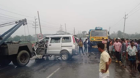 ইটাখোলা হাইওয়ে থানার উপ-পুলিশ পরিদর্শক আরিফুর রহমান জানান, ঢাকা থেকে ব্রাহ্মণবাড়িয়াগামী মাইক্রোবাসটি বেপরোয়া গতিতে ঘাসিরদিয়া এলাকায় পৌছলে বিপরীত দিক থেকে আসা পাথর বোঝাই ট্রাকের সাথে মুখোমুখি সংঘর্ষ হয়। এতে ঘটনাস্থলেই একজনের মৃত্যু হয়। হাসপাতালে আনার পর চিকিৎসাধীন অবস্থায় আরো একজনের মৃত্যু হয়। মাইক্রোবাসের চালক এবং অপর যাত্রী নরসিংদী জেলা হাসপাতালে চিকিৎসাধীন। পরিবারের আবেদনের প্রেক্ষিতে পরবর্তী আইনগত ব্যবস্থা নেয়া হবে।