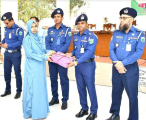 পরে গত কয়েক বছরে আইন-শৃঙ্খলা রক্ষা, অপরাধ দমন এবং অপরাধীদের গ্রেফতারসহ দেশের অভ্যন্তরীণ নিরাপত্তা বিধান ও জনগণের জানমাল রক্ষাকালে কর্তব্যরত অবস্থায় নিহত নওগাঁ জেলার স্থায়ী বাসিন্দা ৩৫ জন পুলিশ সদস্য জীবন উৎসর্গ করেছেন তাদের পরিবারবর্গকে সম্মাননা স্মারক প্রদান করা হয়।