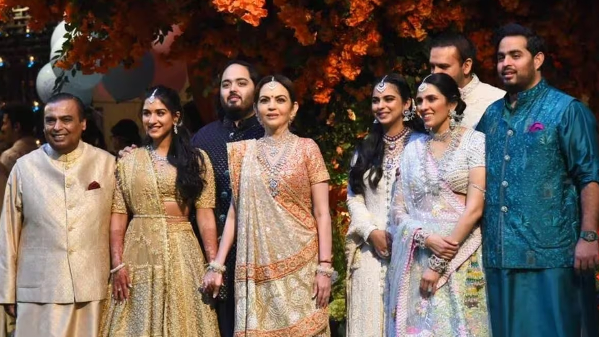 ছোট ছেলের প্রাক বিয়ের অনুষ্ঠানে আম্বানি পরিবারের সদস্যরা। ছবি: সংগৃহীত