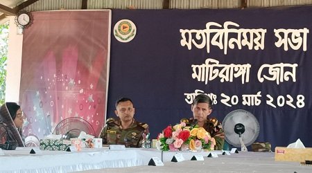 এসময় মাটিরাঙ্গা জোনের উপ অধিনায়ক মেজর মুরাদ হোসেন পিএসসি, মাটিরাঙ্গা উপজেলা পরিষদের চেয়ারম্যান মো. রফিকুল ইসলাম, মাটিরাঙ্গা থানার ইন্সপেক্টর তদন্ত শরীফুল ইসলাম, গুইমারা ৩৪ আনসার ব্যাটালিয়ন সাবিবর হোসেন, গুইমারা ইউনিয়ন পরিষদ চেয়ারম্যান নির্মল নারায়ন ত্রিপুরা, মাটিরাঙ্গা বন বিভাগের রেঞ্জ কর্মকর্তা মো. আতাউর রহমান, গুইমারা থানার এসআই জহিরুল ইসলাম,মাটিরাঙ্গা পৌর কাউন্সিলর মোহাম্মদ আলী,পৌর কাউন্সিলর মো.এমরান হোসেন,মাটিরাঙ্গা প্রেসক্লাবের অর্থ সম্পাদক অন্তর মাহমুদ, মাটিরাঙ্গা ফায়ার সার্ভিস এন্ড সিভিল ডিফেন্স এর ইনচার্জ মোঃ হারুন, মাটিরাঙ্গা বাজার ব্যবস্থাপনা কমিটির সাধারন সম্পাদক মোঃ সোহাগ মজুমদার প্রমুখ বক্তব্য রাখেন।সভাপতি,র বক্তব্যে মাটিরাঙ্গা জোন অধিনায়ক লে.কর্ণেল মো.কামরুল হাসান পিএসসি বলেনপার্বত্যাঞ্চলের মাটিরাঙ্গা জোনের আওতায় অসহায় -হতদরিদ্র নানা জাতি-গোষ্ঠীর বিভিন্ন সমস্যার সমাধান এবং সাধারন মানুষের জীবন মান উন্নয়নে কাজ করে যাচ্ছে বাংলাদেশ সেনাবাহিনী জানিয়ে তিনি আরো বলেন, মাটিরাঙ্গা সেনা জোন নিয়ন্ত্রিত এলাকায় চোরাচালান ও মাদকদ্রব্যের ব্যবহার বন্ধ সহ সার্বিক নিরাপত্তা বজায়ে স্থানীয় জনপ্রতিনিধি, হেডম্যান, কার্বারী ও সচেতন মহলের সহযোগিতা কামনা করেন।এ ছাড়াও পাহাড়ে ক্ষুদ্র-নৃগোষ্টিদের প্রাণের উৎসব বৈসাবী ও পবিত্র ঈদ উল ফিতর উদযাপন উপলক্ষে যে কোন চাঁদাবাজি ও নকল টাকার কারবার বন্ধে তথ্যপ্রদান সহ পাহাড়ি-বাঙালীদের মধ্যে শান্তি-সম্প্রীতি বজায়ে সকলকে ঐক্যবদ্ধ থাকার আহবান জানান তিনি।