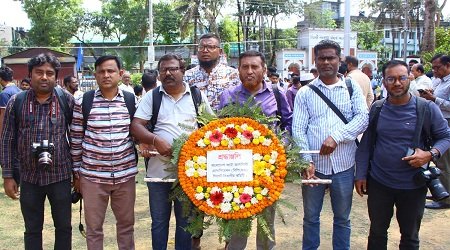 শহিদ আহমেদ খান সাবের,সিলেট প্রতিনিধি : বাংলাদেশ ফটো জার্নালিস্ট এসোসিয়েশন (বিপিজেএ) সিলেট বিভাগীয় কমিটির উদ্যোগে মহান স্বাধীনতা ও জাতীয় দিবস উপলক্ষে সকল শহীদের প্রতি শ্রদ্ধাঞ্জলী অর্পন করা হয়েছে। মঙ্গলবার (২৬ মার্চ) সকালে নগরীর চৌহাট্রাস্থ কেন্দ্রীয় শহীদ মিনারে শ্রদ্ধাঞ্জলী অর্পন করেন নেতৃবৃন্দ।