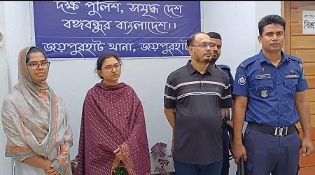 মিজানুর রহমান মিন্টু,জয়পুরহাট প্রতিনিধি : জয়পুরহাটে চাকরির প্রলোভন দেখিয়ে টাকা আত্মসাতের অভিযোগের ঘটনায় দায়ের করা মামলায় এক দম্পতিকে গ্রেফতার করেছে পুলিশ।রোববার (৫ মে) সকালে জয়পুরহাট শহরের নতুনহাট সরদারপাড়ার নিজ বাসা থেকে তাদের গ্রেফতার করা হয়।গ্রেফতার দম্পতি হলেন আবু হেনা ফুল মিয়া (৪৬) ও তার স্ত্রী সেলিনা আক্তার (৪০)। তারা জয়পুরহাট শহরের নতুনহাট সরদারপাড়া মহল্লায় বসবাস করেন জয়পুরহাট সদর থানার ভারপ্রাপ্ত কর্মকর্তা (ওসি) হুমায়ূন কবির জানান, জাহিদুল ইসলামের স্ত্রী ফারহানা মোস্তারী জয়পুরহাট শহরের নতুনহাট সরকারি প্রাথমিক বিদ্যালয়ে সহকারী শিক্ষিকা পদে চাকরি করেন।