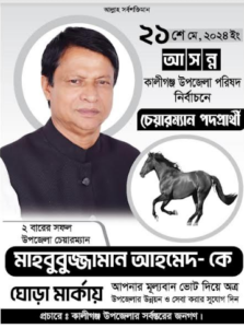 রিটার্নিং কর্মকর্তা বরাবর দাখিলকৃত অভিযোগ ও প্রত্যক্ষদর্শী সূত্রে জানা যায়, ষষ্ঠ উপজেলা পরিষদ নির্বাচনের দ্বিতীয় ধাপে লালমনিরহাটের কালীগঞ্জ উপজেলা পরিষদের নির্বাচন ২১ মে অনুষ্ঠিত হবে। এ উপজেলায় চেয়ারম্যান পদে তিনজন প্রার্থী প্রতিদ্বন্দ্বিতা করলেও মূল প্রতিদ্বন্দ্বিতা হবে লালমনিরহাট-২ (আদিতমারী-কালীগঞ্জ) আসনের এমপি ও সাবেক সমাজকল্যাণমন্ত্রী নুরুজ্জামান আহমেদের ছেলে রাকিবুজ্জামান আহমেদ ও তার সহোদর ছোট ভাই সদ্য সাবেক উপজেলা পরিষদ চেয়ারম্যান মাহবুবুজ্জামান আহমেদের মধ্যেই। অপর প্রতিদ্বন্দ্বী প্রার্থী হচ্ছেন তারিকুল ইসলাম ওরফে তুষার। বিকেলে ভোটের প্রচার-প্রচারণা করতে যান কাশীরাম গ্রামে আনারস প্রতীকের প্রার্থী রাকিবুজ্জামান আহমেদের কর্মীরা।
