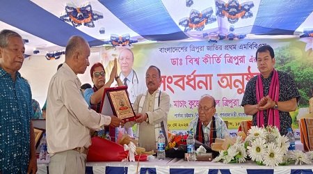 জসীম উদ্দিন জয়নাল,পার্বত্যাঞ্চল প্রতিনিধি: বাংলাদেশের ত্রিপুরা জাতির প্রথম এমবিবিএস ডা. বিশ্ব কীর্তি ত্রিপুরাকে সংবর্ধনা প্রদান করা অনুষ্ঠিত হয়েছে।শনিবার (১৮মে) সকাল সাড়ে ১১টার দিকে খাগড়াছড়ি সদর ইউনিয়নস্থ চম্পাঘাট অখন্ডমন্ডলী উপাসনা মন্দির ও শিশু সদন প্রাঙ্গণে এ সংবর্ধনা অনুষ্ঠান অনুষ্ঠিত হয়। এ সময় চম্পাঘাট শিশু সদন’র সভাপতি কনক বরণ ত্রিপুরা’র সভাপতিত্বে প্রধান অতিথি হিসেবে উপস্থিত ছিলেন পার্বত্য চট্টগ্রাম বিষয়ক মন্ত্রণালয়ের প্রতিমন্ত্রী কুজেন্দ্র লাল ত্রিপুরা এমপি।