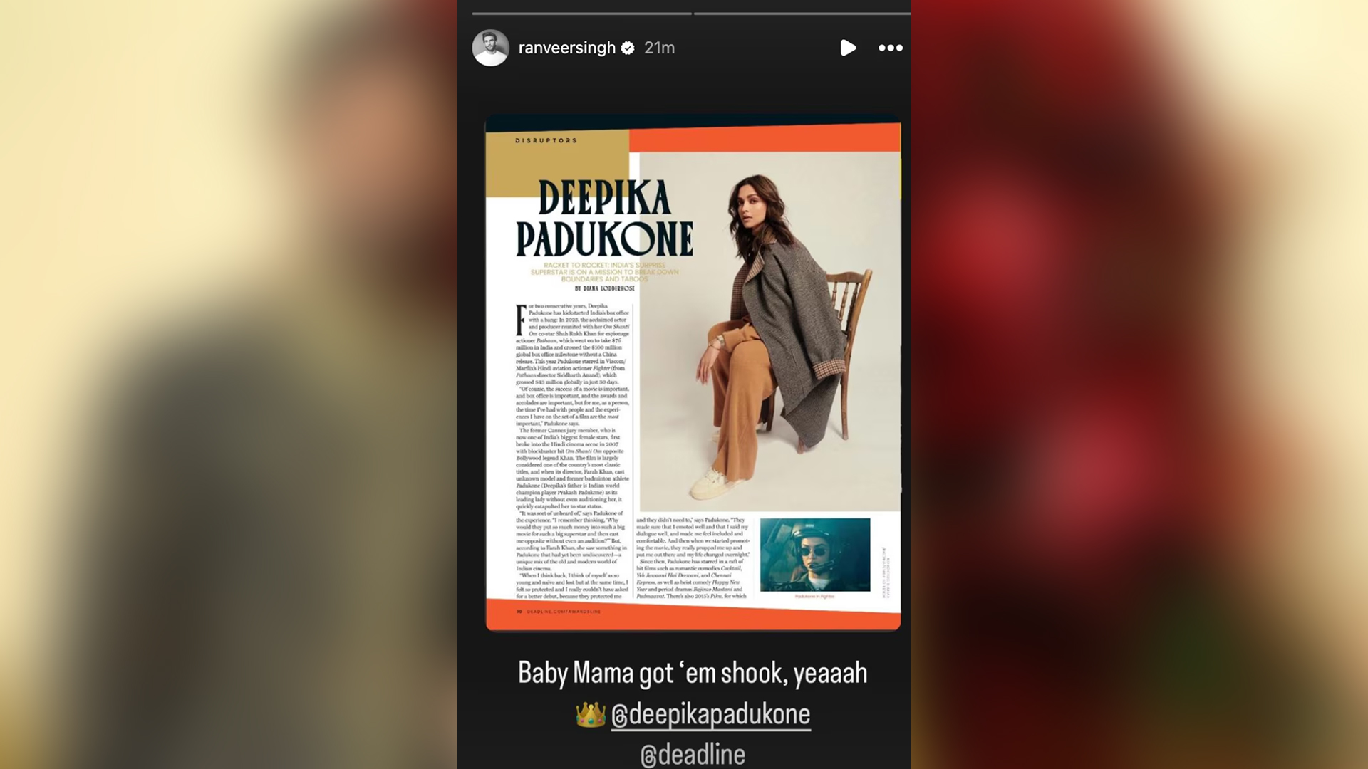 এদিকে স্ত্রীর এমন সাফল্যে ইনস্টাগ্রাম পোস্ট দিয়েছেন রণবীর। দীপিকাকে নিয়ে প্রকাশিত এক প্রতিবেদনের ছবি পোস্ট করে এর ক্যাপশনে রণবীর লিখেছেন,