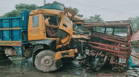 মোঃ আফজাল হোসেন, ফুলবাড়ী, দিনাজপুর প্রতিনিধি : দিনাজপুরের ফুলবাড়ীতে পণ্যবাহী ট্রাকের সঙ্গে গরুবাহী নছিমনের মুখোমুখি সংঘর্ষে নছিমন চালকসহ দুইজন নিহত হয়েছেন। এ ঘটনায় আহত হয়েছেন পাঁচজন এদের মধ্যে চারজনের অবস্থা আশঙ্কাজনক।গত শুক্রবার দুপুর ২টার দিকে ফুলবাড়ী-দিনাজপুর আঞ্চলিক মহাসড়কের ফুলবাড়ী উপজেলার রাজারামপুর ঘাটপাড়া আদর্শ কলেজ পাড়া সংলগ্ন সড়কে এ দুর্ঘটনা ঘটেছে। ফুলবাড়ী থানার অফিসার ইনচার্জ (ওসি) মোস্তাফিজার রহমান দুর্ঘটনার সত্যতা নিশ্চিত করেছেন।নিহতরা দুইজন হলেন, জয়পুরহাটের পাঁচবিবি উপজেলার করিয়া গ্রামের আব্দুর রাজ্জাকের ছেলে নছিমন চালক মিনহাজুল ইসলাম (৩৮) ও একই উপজেলার নওনা গ্রামের গরু ব্যবসায়ী মোকলেছুর রহমান (৪২)। এ ঘটনায় আহত পাঁচজন হলেন, ট্রাক চালক রবিউল ইসলাম (৪৫), জয়পুরহাটের পাঁচবিবি উপজেলার গরু ব্যবসায়ী জয়নাল আবেদীন (৬০), ফরিদ উদ্দিন (৪৬), নজরুল ইসলাম (৪২) ও আবুল কালাম (৪০)। এদের মধ্যে ট্রাক চালকের নাম পাওয়া গেলেও পরিচয় পাওয়া যায়নি।পুলিশ ও স্থানীয়রা বলেন, আমবাড়ী থেকে ছেড়ে আসা গরু বাহী নছিমন পাঁচবিবি যাওয়ার পথে ফুলবাড়ী থেকে দিনাজপুর গামী পণ্য বোঝাই ট্রাক (ঢাকা-মেট্রো-ট-১৮৯৩৮৮) ট্রাকের সঙ্গে ফুলবাড়ী-দিনাজপুর আঞ্চলিক মহাসড়কের ফুলবাড়ী রাজারামপুর ঘাটপাড়া আদর্শ কলেজপাড়া সংলগ্ন সড়কে মুখোমুখি সংঘর্ষ হলে উভয় গাড়ির সামনের অংশ দুমড়েমুচড়ে যায়। এতে ঘটনাস্থলেই নছিমন চালক মিনহাজুল ইসলাম (৩৮) ও একই উপজেলার নওনা গ্রামের গরু ব্যবসায়ী মোকলেছুর রহমানের (৪২) মৃত্যু ঘটে। খবর পেয়ে ফুলবাড়ী ফায়ার সার্ভিসের উদ্ধারকর্মী ও পুলিশ স্থানীয়দের সহায়তায় আহতদের উদ্ধার করে ফুলবাড়ী উপজেলা স্বাস্থ্য কমপ্লেক্সে নিয়ে যায়।দুর্ঘটনা থেকে প্রাণে বেঁচে যাওয়া প্রত্যক্ষদর্শী পাঁচবিবি উপজেলার রামনগর এলাকার গরু ব্যবসায়ী আবুল কালাম বলেন, এলাকার ৮জন গরু ব্যবসায়ী গতকাল শুক্রবার (৫ জুলাই) ভোরে পাঁচবিবি থেকে আমবাড়ী গরুহাটে আসেন। ৯টি গরু কিনে একই নছিমন যোগে বাড়ী ফেরার পথে ফুলবাড়ীতে ট্রাকের সঙ্গে নছিমনের মুখোমুখি সংঘর্ষের ঘটনায় ওই হাতাহতের ঘটনা ঘটেছে।