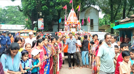 এ উপলক্ষে রোববার সকালে মন্দির চত্বর থেকে শতশত ভক্তবৃন্দ জগন্নাথ দেবের রথযাত্রায় অংশ নেন। পরবর্তিতে রথ টেনে পৌর শহরের বিভিন্ন সড়ক প্রদক্ষিণ করা হয়। এ সময় অন্যদের মধ্যে উপজেলা পূজা উদযাপন পরিষদের সাধারন সম্পাদক নির্মলেন্দু সরকার বাবুল, সাবেক মেয়র ও দশভূজা মন্দির কমিটির সাধারণ সম্পাদক শুভেন্দু সরকার পিন্টু, সহ:সাধারন সম্পাদক পলু ত্রিবেদী, উপজেলা হিন্দু বৌদ্ধ খ্রিষ্টান ঐক্য পরিষদের সাধারন সম্পাদক বিপ্লব মজুমদার, কালীবাড়ি মন্দির কমিটির সহ:সভাপতি ধনেশ পত্রনবীশ, ব্যবসায়ী পরিমোল ঘোষ সহ স্থানীয় সনাতন ধর্মালম্বী ভক্তরা উপস্থিত ছিলেন।