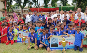 এতে সভাপতিত্ব করেন উপজেলা নির্বাহী কর্মকর্তা সুস্মিতা সাহা। প্রধান অতিথির বক্তৃতা করেন সংসদ সদস্য ডাঃ তৌহিদুজ্জামান তুহিন। বিশেষ অতিথির বক্তৃতা করেন উপজেলা পরিষদের চেয়ারম্যান বীর মুক্তিযোদ্ধা এস এম হাবিবুর রহমান, সহকারী কমিশনার (ভূমি) গুনঞ্জন বিশ্বাস, ওসি ইকবাল বাহার চৌধুরী, উপজেলা মহিলা ভাইস চেয়ারম্যান নাসিমা খাতুন, উপজেলা শিক্ষা অফিসার মোস্তাফিজুর রহমান প্রমুখ। বক্তৃতা শেষে অতিথিরা বঙ্গবন্ধু ও বঙ্গমাতা শেখ ফজিলাতুন্নেছা মুজিব গোল্ড কাপ ফুটবল টুর্নামেন্টের বিজয়ীদের মাঝে পুরস্কার বিতরণ করেন।