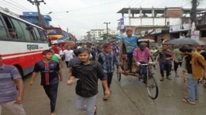 মোঃ আফজাল হোসেন, ফুলবাড়ী, দিনাজপুর প্রতিনিধি : কোটা সংস্কার আন্দোলনের ডাকা কর্মসূচি ঘিরে ফের উত্তাল হয়ে উঠেছে রাজধানী ঢাকা সহ দেশের বিভিন্ন এলাকা। এরই ধারাবাহিকতায় দিনাজপুর জেলার ফুলবাড়ী সহ আশেপাশের উপজেলার নানা শ্রেণি পেশার মানুষেরাও পিছিয়ে নেই। গতকাল শনিবার সকাল ১০টায় নিমতলা মোড় থেকে লাল ফিতা পরে বৃষ্টি উপেক্ষা করে রাস্তায় বিক্ষোভ মিছিল বের করেন। মিছিল শেষে নিমতলা মোড়ে এসে শিক্ষার্থী সহ নানা শ্রেণি পেশার মানুষ অবস্থান নেন।