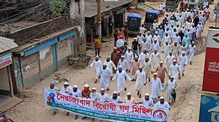সরকার পতনের পর একটি কুচক্রী মহল দেশের সংখ্যালঘু সম্প্রদায়ের উপর নির্যাতনের অপচেষ্টা চালিয়ে দেশের মুসলমানদের উপর দায় চাপানোর চেষ্টা করছে। তাদের এই অপচেষ্টা রুখে দিতে হবে। বিগত ১৬ বছর গণতন্ত্রের নামে মানুষের সকল অধিকার হরণ করা হয়েছে হাসিনা সরকার। ওই সময় অন্যায়ের বিরুদ্ধে কেউ প্রতিবাদ করলে, তাঁকে ধরে আয়না ঘরে নিয়ে যাওয়া হতো। তাদের উপর পৈশাচিক আচরণ করা হতো। আমরা খুনি হাসিনার ফাঁসি সহ বিগত শাসনামলের সকল গুম, খুন ও দুর্নীতির বিচার দাবি করছি।