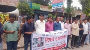 জিন্নাতুল ইসলাম জিন্না,লালমনিরহাট প্রতিনিধি : ইস্ট ওয়েস্ট মিডিয়া কমপ্লেক্সে হামলা ও ভাঙচুরের প্রতিবাদে লালমনিরহাট জেলা গণমাধ্যমকর্মীরা মানববন্ধন কর্মসূচি পালন করেছে।বুধবার (২১আগস্ট) দুপুরে লালমনিরহাট জেলার প্রাণ কেন্দ্র মিশনমোড় গোলচত্বরে সর্বস্তরের গণমাধ্যমকর্মীদের ব্যানারে এই মানববন্ধন কর্মসূচি পালিত হয়। গত সোমবার দুপুর ২টার দিকে ঢাকা বসুন্ধরা ইস্ট ওয়েস্ট মিডিয়া মিডিয়া গ্রুপ কমপ্লেক্সে হঠাৎ দুর্বৃত্তদের শতাধিক মানুষের একটি মিছিল বসুন্ধরা আবাসিক এলাকায় অবস্থিত ইস্ট ওয়েস্ট মিডিয়া গ্রুপে হামলা ও ভাঙচুর চালায়। এ সময় অফিসের টেবিল, কম্পিউটার, এসি ভাঙচুরের পাশাপাশি মিডিয়া প্রাঙ্গণে রাখা ২০-২৫টি গাড়িতে ব্যাপক ভাঙচুর চালানো হয়।