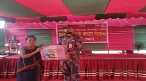 রবিবার (২৯ সেপ্টেম্বর) সকাল ১১টার দিকে খেদাছড়া ব্যাটালিয়ন ৪০ বিজিবি পলাশপুর জোনের উদ্যােগে সম্প্রীতি ও উন্নয়ন প্রকল্পের আওতায় পলাশপুর জোন ও খেদাছড়া ব্যাটালিয়ন (৪০ বিজিবি) এর জোন কমান্ডার লেঃ কর্ণেল মোহাম্মদ মুনতাসির মামুন, বিজিওএম, পিএসসি, ইঞ্জিনিয়ার্স কর্তৃক জোন সদরে স্থানীয় ১৬টি গরীব ও দুঃস্থ বাঙ্গালী এবং পাহাড়ী পরিবারের মাঝে ১১ বান ঢেউটিন,
