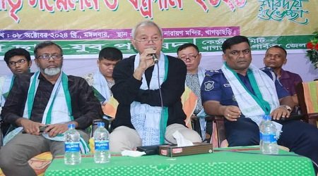 গতকাল (৮অক্টোবর) সন্ধ্যায় খাগড়াছড়ি শ্রী শ্রী লক্ষী নারায়ন মন্দিরে শারদীয় দুর্গাপূজা উপলক্ষে মাতৃ সম্মেলন ও বস্ত্র দান অনুষ্ঠানে প্রধান অতিথির বক্তব্যে উপদেষ্টা এসব কথা বলেন। উপদেষ্টা সুপ্রদীপ চাকমা আরও বলেন, বাংলাদেশ সাম্প্রদায়িক সম্প্রীতির দেশ। এই দেশ আমাদের সকলের। অন্তর্বর্তীকালীন সরকার জাতি-ধর্ম-বর্ণ-গোষ্ঠী সকলের ভাগ্য উন্নয়ন এবং সমান অধিকার সুনিশ্চিত করতে কাজ করে যাচ্ছে। শারদীয় দুর্গাপূজা উৎসবে সকলের শান্তি, কল্যাণ ও সমৃদ্ধি কামনা করেন।