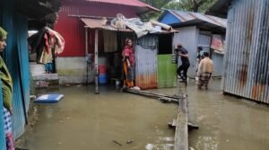 নোয়াখালী প্রতিনিধি : নোয়াখালীর বন্যা ও স্থায়ী জলাবদ্ধতা গত ৫০-৬০ বছরের রেকর্ড ভেঙেছে। সরকারি হিসেব বন্যায় সবচেয়ে বেশি ক্ষয়ক্ষতি হয়েছে নোয়াখালীতে। যার ক্ষয়ক্ষতির পরিমাণ ৪হাজার ১৯১কোটি টাকা। বন্যা পরবর্তীতে দীর্ঘ হয়েছে জেলার জলাবদ্ধতার পরিস্থিতি। আর এর জন্য খাল দখল, খালের ওপর বহুতল ভবন, অপরিকল্পিতভাবে যত্রতত্র কালভার্ট, বাঁধ নির্মাণকে দাবি করে দ্রুত এর বিরুদ্ধে ব্যবস্থা নেওয়ার দাবি জানিয়েছেন স্থানীয়রা।সরজমিনে জলাবদ্ধ এলাকা ঘুরে দেখা গেছে, জেলার বেগমগঞ্জ উপজেলার চৌমুহনী পৌরসভার ৮নং ওয়ার্ডের বিভিন্ন সড়ক থেকে পানি নেমে গেলেও এখনও পানি রয়েছে প্রতিটি বাড়ির উঠোনে। কোথাও হাঁটু পরিমাণ, কোথাও এর চেয়ে বেশি পানি রয়েছে।