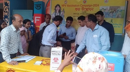 টিকাদান কার্যক্রম উদ্বোধনের আগে ওই বিদ্যালয়ের পঞ্চম শ্রেণির ক্লাসে গিয়ে শিক্ষার্থীদের সাথে মতবিনিময়, নৈতিক শিক্ষা সম্পর্কে পরামর্শ এবং এইচপিভি টিকার উপকারীতা সম্পর্কে বিস্তারিত আলোচনা করেন উপজেলা নির্বাহী অফিসার মোঃ শাফিউল মাজলুবিন রহমান ও উপজেলা স্বাস্থ্য প্রশাসক ডা. মোঃ হুমায়ুন কবীর।