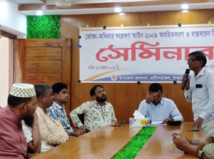 রফিকুল ইসলাম সুজন,রাণীশংকৈল( ঠাকুরগাঁও) প্রতিনিধি : ঠাকুরগাঁওয়ের রাণীশংকৈল উপজেলা হলরুমে সোমবার ২৮ অক্টোবর সকাল ১১টায় ভোক্তা অধিকার সংরক্ষণ আইন-২০০৯ অবহিতকরন ও বাস্তবায়ন বিষয়ক এক সেমিনার অনুষ্ঠিত হয়। উপজেলা নির্বাহী অফিসার রকিবুল হাসানের সভাপতিত্বে সেমিনারে বিভিন্ন কর্মকর্তা, রাজনৈতিক নেতা, ব্যবসায়ী ও সাংবাদিকরা উপস্থিত ছিলেন।