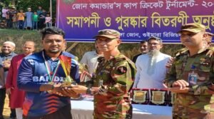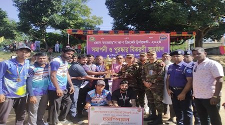 জসীম উদ্দিন জয়নাল,পার্বত্যাঞ্চল প্রতিনিধি : ১৫ ফিল্ড রেজিমেন্ট আর্টিলারি মাটিরাঙ্গা জোনের সার্বিক ব্যাবস্থাপনায় মাটিরাঙ্গা জোন কমান্ডার ত্রুিকেট টুনামের্ন্ট ফাইনাল খেলায় মাটিরাঙ্গা ৬নং পৌর ওয়ার্ড একাদশকে হারিয়ে চ্যাম্পিয়ন হয়েছে গুইমারা ইউনিয়ন একাদশ। টুর্নামেন্টে ম্যান অব দি সিরিজ নির্বাচিত হয় চ্যাম্পিয়ন গুইমারা একাদশের ব্যাটসম্যান মো. দিদারুল আলম।শুক্রবার (১৫ নভেম্বর)সকাল ১১টার দিকে মাটিরাঙ্গা জোনের আয়োজনে মাটিরাঙ্গা জোন ত্রুিকেট টুনার্মেন্ট ফাইনাল খেলায় বিজয়ীদের চ্যাম্পিচয়ন ট্রফি তুলেদেন মাটিরাঙ্গা জোনের জোন অধিনায়ক লেঃকর্ণেল মো.কামরুল হাসান পিএসসি।মাটিরাঙ্গা জোন কমান্ডারস কাপ ক্রিকেট টুর্নামেন্টে আটটি দল অংশগ্রহণ করে।