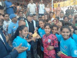 জসীম উদ্দিন জয়নাল,পার্বত্যাঞ্চল প্রতিনিধি : ফুটবলকে তৃনমুলে ছড়িয়ে দিতে এবং ফুটবলের হারানো ঐতিহ্য ফেরাতে খাগড়াছড়ি ফুটবল একাডেমী ও বগুড়ার রক্সি ফুটবল একাডেমীর প্রমিলা ফুটবল দলের মধ্যে প্রীতি ফুটবল ম্যাচে খাগড়াছড়ি ফুটবল একাডেমীকে ৩-২ গোলে হারিয়ে জয় পেয়েছে বগুড়ার রক্সি ফুটবল একাডেমী। মঙ্গলবার (২৬ নভেম্বর) বিকালের দিকে মাটিরাঙ্গার দুর্গম গোমতি বিকে উচ্চ বিদ্যালয় মাঠে অনুষ্ঠিত এ ফুটবল ম্যাচ অনুষ্ঠিত হয়।