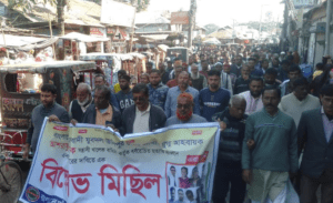 উলিপুর (কুড়িগ্রাম) প্রতিনিধি : কুড়িগ্রামের উলিপুরে পৌর যুবদলের যুগ্ম আহবায়ক আশরাফুল ইসলামের হত্যাকারীদের দ্রুত গ্রেপ্তার ও বিচারের দাবীতে বিক্ষোভ মিছিল অনুষ্ঠিত হয়েছে। শনিবার (৪ জানুয়ারী) দুপুরে উপজেলা ও পৌর যুবদল-মহিলাদলের আয়োজনে দলীয় কার্যালয় থেকে বিক্ষোভ মিছিল বের হয়ে পৌর শহরের প্রধান প্রধান সড়ক প্রদক্ষিন শেষে চৌরাস্তা মোড়ে পথসভায় মিলিত হয়।