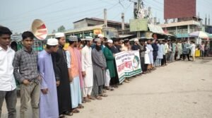মাইদুল ইসলাম মুকুল,ভূরুঙ্গামারী (কুড়িগ্রাম) প্রতিনিধি : মাগুরায় ধর্ষিত আট বছরের শিশু আছিয়ার ধর্ষকের ফাঁসির দাবিতে কুড়িগ্রামের ভূরুঙ্গামারীতে মানববন্ধন করেছে বৈষম্য বিরোধী ছাত্র আন্দোলন। শুক্রবার বেলা ৩টায় ভূরুঙ্গামারী কেন্দ্রীয় বাস টার্মিনালে এই মানববন্ধন অনুষ্ঠিত হয়।বৈষম্য বিরোধী ছাত্র আন্দোলনের ভূরুঙ্গামারী উপজেলার আহবায়ক রোকনুজ্জামান রোকন এর সভাপতিত্বে উক্ত মানববন্ধনে বিভিন্ন শ্রেণি পেশার মানুষ অংশ নেয়।