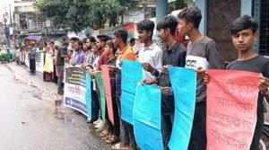 আলমগীর মানিক,রাঙামাটি : নববর্ষের আনন্দ শোভাযাত্রায় পার্বত্য চট্টগ্রাম নিয়ে গভীর ষড়যন্ত্রের অংশ হিসেবে কেএনএফ সন্ত্রাসীদের পক্ষে চাকমা সার্কেল চীফ দেবাশীষ রায়ের দ্বিতীয় স্ত্রী ইয়েন ইয়েনের নেতৃত্বে প্ল্যাকার্ড প্রদর্শন করার ঘটনায় চাকমা রানীর বিরুদ্ধে রাঙামাটি শহরে বিক্ষোভ মিছিল পরবর্তী মানববন্ধন করেছে পার্বত্য চট্টগ্রাম ছাত্র পরিষদ (পিসিসিপি) রাঙামাটি জেলা শাখা।সোমবার (২১ এপ্রিল) দুপুরে রাঙামাটি শহরের বনরূপায় এই কর্মসূচী পালন করে। বেলা সাড়ে ১১ টার সময় শহরের কাঠাঁলতলী থেকে বিক্ষোভ মিছিল নিয়ে পিসিসিপি’র নেতাকর্মীরা শহরের প্রধান প্রধান সড়ক প্রদক্ষিণ করে বনরূপা ট্রাফিক বক্সের সামনে গিয়ে মানববন্ধনে মিলিত হয়।