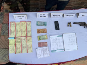 এ সময় তার থেকে ০১টি এলজি অস্ত্র, ০২ রাউন্ড এ্যামোনিশন, ১০টি চাঁদা আদায়ের রশিদ বই, ০১টি মোবাইল সেট, নগদ ২ হাজার ৪ শত ৮০ টাকা এবং ০২টি হিসাবের খাতা জব্দ করা হয়। আটককৃত সন্ত্রাসী হলেন- রাঙ্গামাটি জেলার নানিয়ারচর থানার দেওয়ানপাড়া গ্রামের হরিদাস চাকমার ছেলে সুরেশ ওরফে বিদ্যুৎ চাকমা।