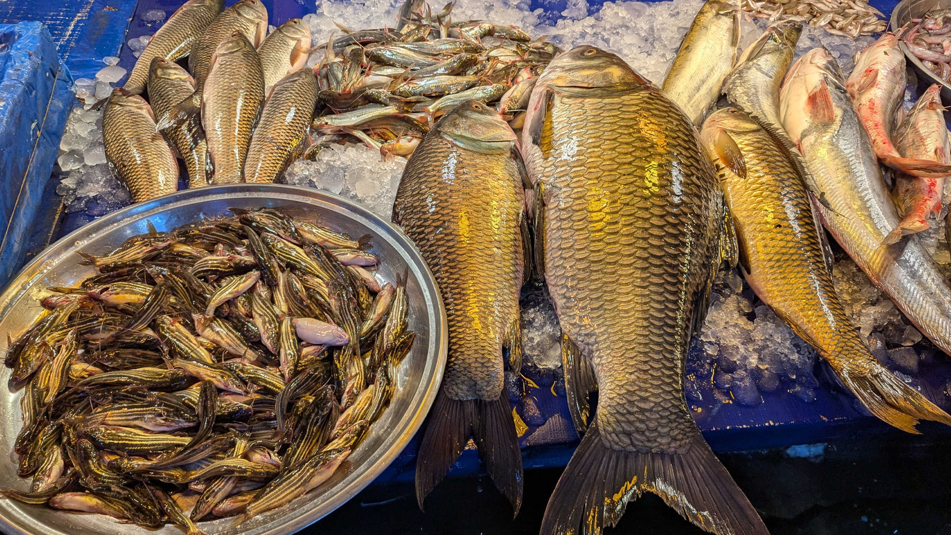 বাজারে অপরিবর্তিত রয়েছে মাছের দাম। বাজারে প্রতি কেজি রুই ৩৫০ থেকে ৪২০ টাকা, কাতল ৩৮০ থেকে ৪৫০ টাকা, চাষের শিং ৫৫০ টাকা, চাষের মাগুর ৫০০ টাকা, চাষের কৈ ২০০ থেকে ২৫০ টাকা, কোরাল ৭৫০ টাকা, চাষের পাঙাশ ১৮০ থেকে ২৩০ টাকা ও তেলাপিয়া ১৫০ থেকে ২২০ টাকা পর্যন্ত বিক্রি হচ্ছে।