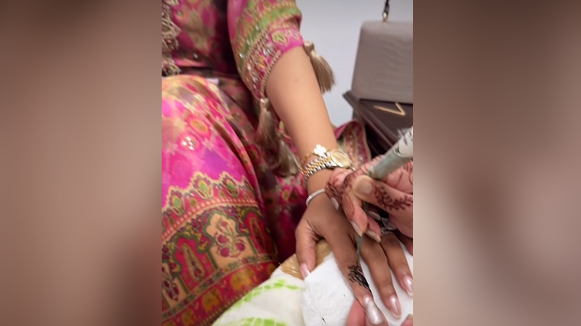 মেহেদি পরার আরেক মুহূর্তের একটি ভিডিও শেয়ার করেছিলেন ফারিয়া।