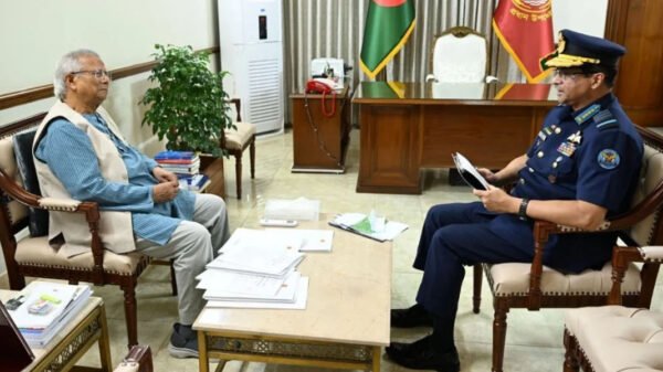 বুধবার (২৩ জুলাই) বিকেলে সৌজন্য এই সাক্ষাৎ অনুষ্ঠিত হয়। সাক্ষাতকালে প্রধান উপদেষ্টা ও বিমানবাহিনীর প্রধান সাম্প্রতিক পেশাগত বিষয়াদি ও জাতীয় নিরাপত্তা সংক্রান্ত বিভিন্ন দিক নিয়ে আলোচনা করেন বলে জানা গেছে। এ সময় বিমানবাহিনীর আধুনিকীকরণ, প্রশিক্ষণ কার্যক্রম এবং আন্তঃবাহিনী সমন্বয় নিয়েও আলোচনা হয়। সাক্ষাৎ শেষে দুই পক্ষই পারস্পরিক সহযোগিতার বিষয়টি গুরুত্ব দিয়ে তুলে ধরেন।