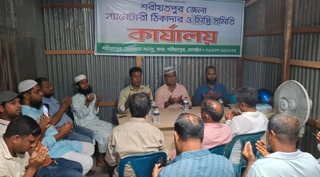 খোরশেদ আলম বাবুল, শরীয়তপুর প্রতিনিধি : শরীয়তপুর জেলা স্যানেটারী ঠিকাদার ও মিস্ত্রি সমিতির কার্যালয় উদ্বোধন করা হয়েছে। ২৬ জুলাই শনিবার সন্ধ্যায় শরীয়তপুর স্টেডিয়াম সংলগ্ন প্রধান সড়কের পাশে সমিতির কার্যালয় উদ্বোধনী অনুষ্ঠানে উপস্থিত ছিলেন শরীয়তপুর জেলা স্যানেটারী-টাইলস-থাই ব্যবসায়ী কমিটির সভাপতি ইলিয়াস ঢালী, সাধারণ সম্পাদক আবুল হাসেম মোল্যা, আংগারিয়া বাজার ব্যবসায়ি সমিতির সদস্য জাকির মোড়ল ও সোহাগ।