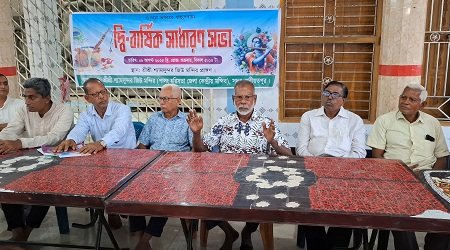 শরীয়তপুর প্রতিনিধি : শ্রীশ্রী শ্যামসুন্দর জিউ মন্দিরে (পালং হরিসভা কেন্দ্রীয় মন্দির) দ্বি-বার্ষিক সাধারণ সভা ৮ আগস্ট শুক্রবার বিকেল ৫টায় মন্দির প্রাঙ্গণে আয়োজন করা হয়। আমন্ত্রিত অতিথিবৃন্দ, কমিটির উপদেষ্টা মন্ডলি, সদস্যবৃন্দ ও মন্দিরের ভক্তবৃন্দ নির্ধারিত সময়ে সভাস্থলে উপস্থিত হয়। আলোচনার এক পর্যায়ে সভা স্থগিত ষোষণা করেন মন্দির কর্তৃপক্ষ।মন্দির পরিচালনা কমিটির সভাপতি অনিক ঘটক চৌধুরীর সভাপতিত্বে ও সাধারণ সম্পাদক সুশিল চন্দ্র দেবনাথের সঞ্চালনায় সভায় উপস্থিত ছিলেন জেলা বিএনপির সধারণ সম্পাদক সরদার একেএম নাসির উদ্দিন কালু, সাংগঠনিক সম্পাদক মাহবুব আলম তালুকদার, মন্দির পরিচালনা কমিটির উপদেষ্টা মুকুল চন্দ্র রায়, অমিত ঘটক চৌধুরী, সত্যজিৎ ঘোষ, গৌর চান বনিক, ভবতোষ দাস ও সমির কিশোর দে।