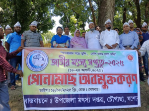 এম এ রহিম, চৌগাছা (যশোর) : যশোরের চৌগাছায় জাতীয় মৎস্য সপ্তাহ উপলক্ষে র্যালী ও আলোচনা সভা করা হয়েছে। সোমবার (১৮ আগস্ট) উপজেলা প্রশাসন ও মৎস্য অফিসের আয়োজনে পরিষদের হলরুমে এক আলোচনা সভাশেষে র্যালী করা হয়। এ বছরের মৎস্য সপ্তাহের শ্লোগান “অভয়শ্রম গড়ে তুলি, দেশি মাছে দেশ ভরি”।
