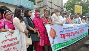 জয়পুরহাট হোল্ডিং ট্যাক্স বৃদ্ধির প্রতিবাদে মানববন্ধন ও সমাবেশ