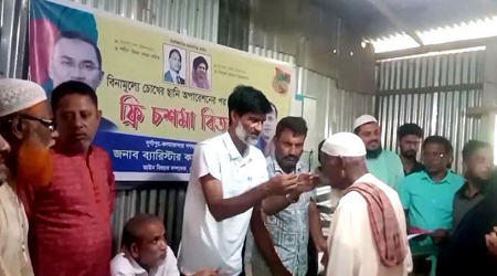 চশমা নিতে আসা বাকলজোড়া গ্রামের জমিলা খাতুন (৬৯) বলেন, গত দুই বছর ধইরা আমার দুইডা চোখই প্রায় নস্ট অইয়া গেছিন। টেহার অভাবে অতোদিন ডাক্তার দেহাইতে হারছিলাম না। গুজিরকোনা মাঠে চক্ষু ক্যাম্পে ডাক্তার দেহানোর হরে অহারেশন করাইয়া দিছে ব্যারিস্টার সাইব। টেহা ছাড়া ডাক্তার দেহাইছি। হরে ডাক্তার আমার খোজ নিছে। আইজ চশমা হাইছি, হেইলা আমার হুত (ছেলে) আল্লাহ্ তারে ভালা রাহুক।