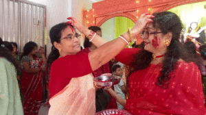 বৃহস্পতিবার সকালে মণ্ডপে মণ্ডপে আনুষ্ঠানিক পূজা অর্চনা এবং সিঁদুর খেলার মধ্যে দিয়ে ভক্তরা মা দূর্গাকে স্ব স্ব অধিষ্ঠান থেকে আনুষ্ঠানিক বিদায় দেবেন। তাই মণ্ডপে মণ্ডপে আজ শুধুই বিষাদের ছায়া। উলুধ্বনি, শঙ্খ, ঘণ্টা আর ঢাকঢোলের বাজনায় থাকবে দেবী দুর্গার বিদায়ের সুর।
