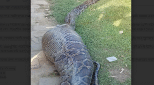 আলমগীর মানিক,রাঙামাটি : রাঙামাটির দুর্গম বরকল উপজেলার এরাবুনিয়ায় এক বিরল ঘটনার জন্ম দিয়েছে একটি বিশাল অজগর সাপ। বুধবার (২২ অক্টোবর) সকালে ওই এলাকার এক কৃষকের ছাগল গিলে ফেলেছে অজগরটি—এমন খবর ছড়িয়ে পড়তেই এলাকায় চাঞ্চল্যের সৃষ্টি হয়।স্থানীয় সূত্রে জানা যায়, এরাবুনিয়া ৫নং ওয়ার্ডের কৃষক মো. রুমি সকালে তার একটি ছাগল খুঁজে না পেয়ে চারপাশে খোঁজ শুরু করেন। কিছুক্ষণ পর তিনি জঙ্গলের ভেতর দেখতে পান একটি বিশাল আকৃতির অজগর সাপ, যার পেট অস্বাভাবিকভাবে ফুলে ছিল।