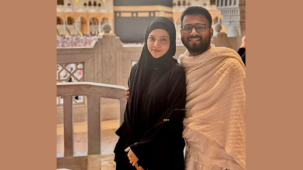 ‘আমার খুব ইচ্ছা ছিল, বিয়ের পর স্ত্রীসহ ওমরাহ পালন করতে আসব। ভিসা হওয়ার পরদিনই আমাদের নিকেতনের বাসায় দুই পরিবারের কাছের কয়েকজন মিলে বিয়ের আনুষ্ঠানিকতা সেরে নিই। পরদিন মক্কার উদ্দেশে ঢাকা ছাড়ি। এমন একজন বন্ধুকে জীবনসঙ্গী হিসেবে পেয়ে খুব ভালো লাগছে। সবার কাছে আমাদের আগামী জীবনের জন্য দোয়া চাই।’