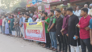 উলিপুরে ভুল চিকিৎসায় নবজাতকের মৃত্যুর অভিযোগ প্রতিবাদে মানববন্ধন