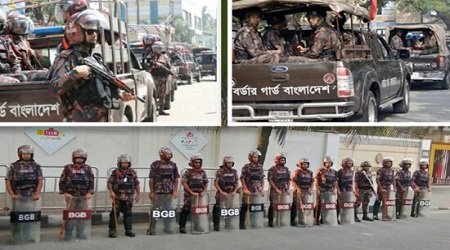 ডেস্ক নিউজ : আইনশৃঙ্খলা পরিস্থিতি স্বাভাবিক রাখতে রাজধানী ঢাকাসহ আশপাশের জেলাগুলোয় ১৪ প্লাটুন বর্ডার গার্ড বাংলাদেশের (বিজিবি) সদস্য মোতায়েন করা হয়েছে।বৃহস্পতিবার (১৩ নভেম্বর) সকালে বিজিবির গণসংযোগ কর্মকর্তা শরিফুল ইসলাম বিষয়টি নিশ্চিত করেছেন। তিনি জানান, সার্বিক আইনশৃঙ্খলা রক্ষা ও নিরাপত্তা নিশ্চিতে রাজধানী ঢাকাসহ আশপাশের জেলাগুলোয় ১৪ প্লাটুন বিজিবি মোতায়েন করা হয়েছে। নিরাপত্তা নিশ্চিতে বুধবার থেকেই দায়িত্ব পালন করছেন তারা।